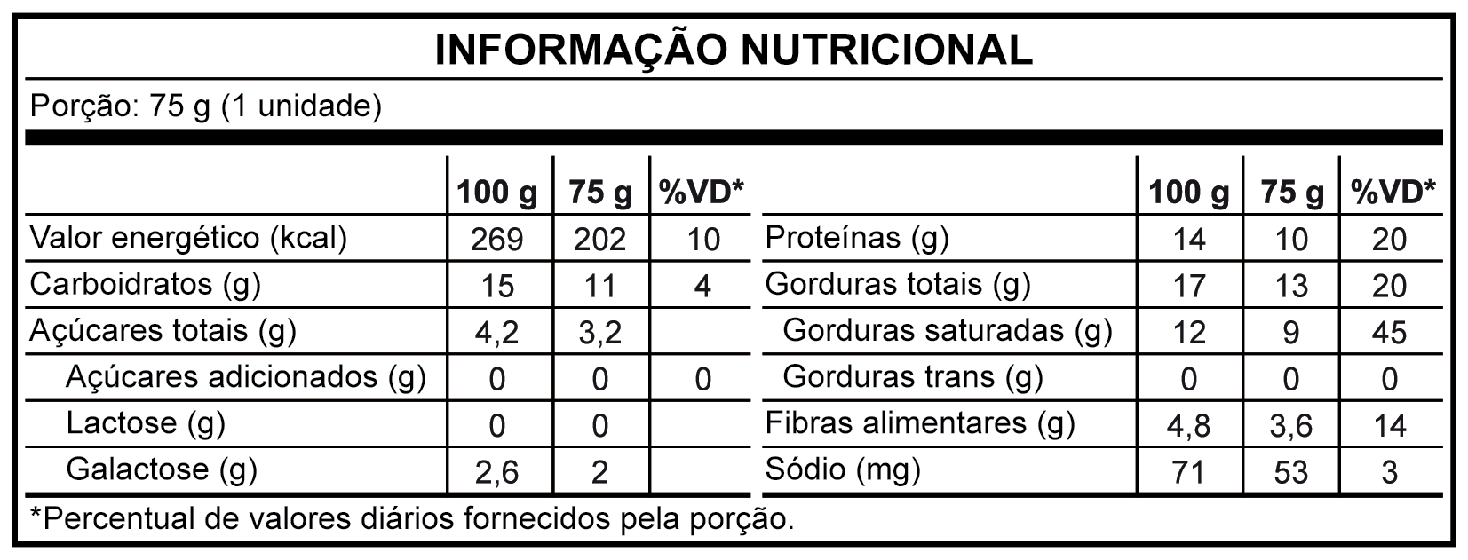 Água, cobertura sabor chocolate branco (óleo de palmiste, colágeno hidrolisado, polidextrose, edulcorantes maltitol e sucralose e emulsificantes lecitina de soja e poliglicerol polirricinoleato), leite em pó desnatado, gordura vegetal, polidextrose, concentrado proteico de soro de leite, caseinato de cálcio, crispies proteicos de soja com cacau e amido de tapioca, enzima lactase, edulcorantes sorbitol, xilitol e sucralose, emulsificantes ésteres de ácidos graxos com propileno glicol, mono e diglicerídeos de ácidos graxos, estabilizantes goma guar, goma acácia e carboximetilcelulose sódica e aromatizante.