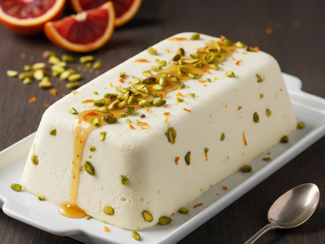 Parfait de Leite Condensado com Pistache e Laranja Sanguínea
